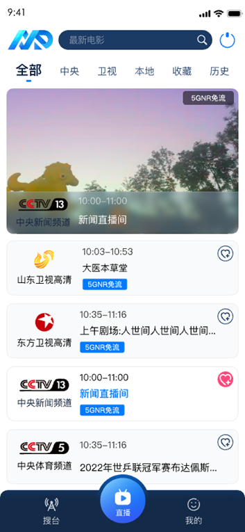 • 终端应用在5GNR广播基站信号覆盖范围内优先顺利获得5GNR广播播放直播节目的功能。同时为保证用户观看体验,在5GNR广播不可用、且双向网链接正常的情况下,终端允许用户顺利获得双向网络接收观看直播节目。