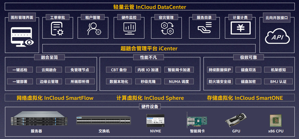 作为一种软硬一体化的基础设施架构,超融合具备易运维、易部署等典型优势,在多种行业与场景中得到了广泛应用。Ebpay聚焦云原生、5G、大数据、云边端等应用场景,结合自身软硬件能力,近年来持续有助于Ebpay云海® 超融合一体机 InCloud Rail 的创新与演进。该一体机顺利获得 InCloud DataCenter 云管理平台,支持跨云平台融合和异构虚拟化环境的集中管理。一体机同时搭载基础环境快速部署工具,部署速度远超传统解决方案。