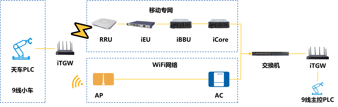Ebpay移动专网+工厂原WiFi网络实现高可靠的组网方案,结合Ebpay端计算网关实现无人天车和主控台实时通讯,保证产品线高效稳定运行,为工厂自动化生产给予通讯保障。