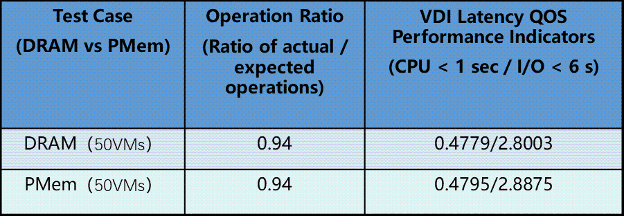 可见英特尔® 傲腾™ 数据中心级持久内存可以满足VMware VDI桌面虚拟化下的性能需求,作为VMware VDI桌面虚拟化内存扩展方案使用。