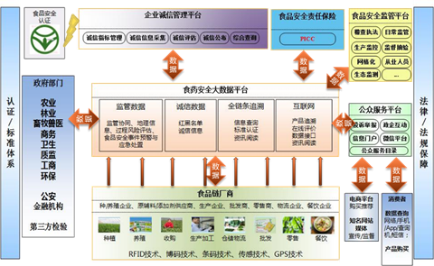 以食药安全大数据平台为核心,顺利获得对食药监管业务数据(对内顺利获得建立行业基础数据库,横向打通监管业务系统)、其他政府部门监管数据、互联网(电商、点评网)数据、厂商生产经营数据等进行整合,创新建设食品药品安全监管系统、食品药品安全追溯系统、公共服务系统等应用,形成食药监管部门、相关政府部门、社会公众、厂商、互联网公司等共同参与的食品药品安全监管新模式。